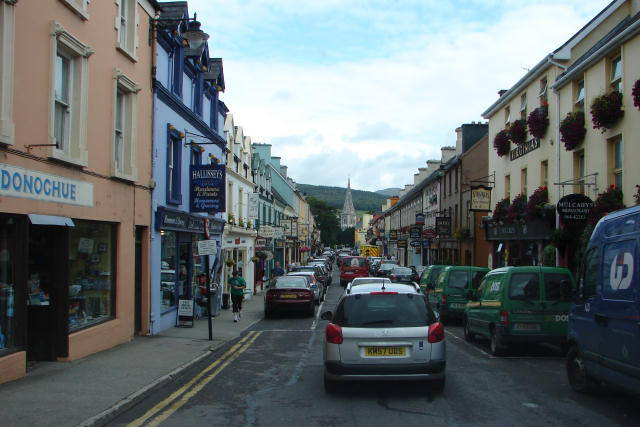 Die erste Station nach unserer Abfahrt in Lauragh war Kenmare (R571) mit seinen malerischen Straßenzügen. Für uns war es auch der Ausgangspunkt zum Ring of Kerry, den wir im Uhrzeigersinn fahren wollten. Zwischen Kenmare und Castle Cove hat man immer wieder sehr schöne Ausblicke auf Kenmare River mit seinen vielen Buchten und Inseln.